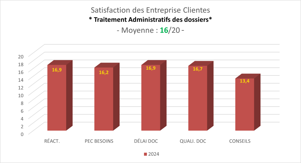 Le traitement administratif a reçu une note de 16/20, témoignant de notre rigueur et de notre efficacité dans la gestion des dossiers, tout en restant attentifs aux axes d’amélioration pour offrir une expérience encore plus fluide.