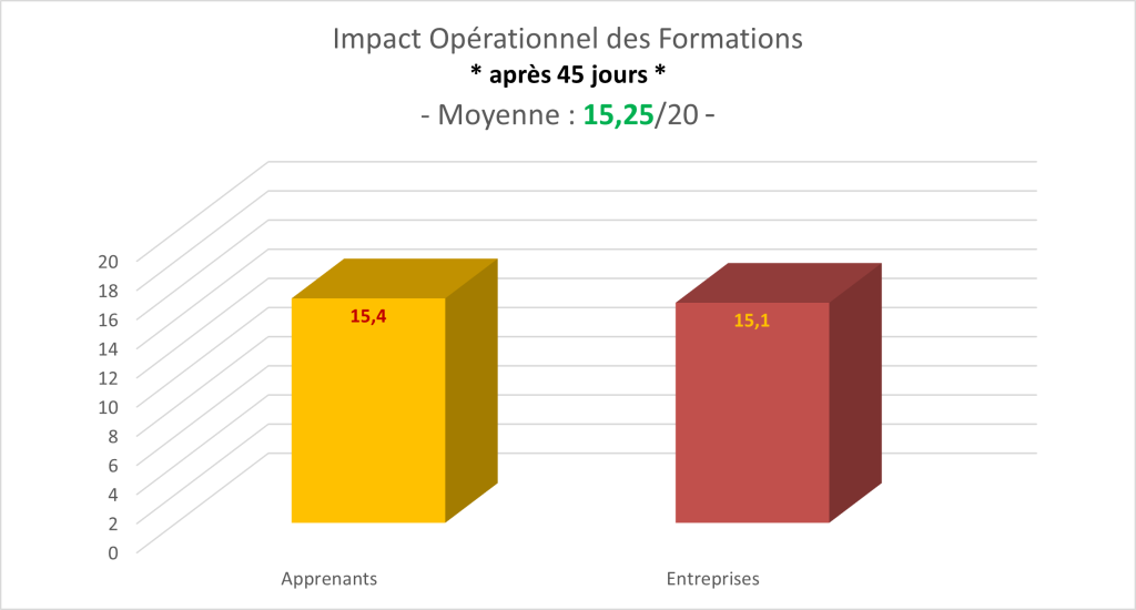 Au bout de 45 jours, l’impact opérationnel atteint une moyenne de 15.25/20.
